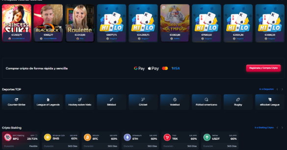 - Apuestas deportivas: Su sección de sportsbook cubre una enorme cantidad de eventos. Desde las ligas de fútbol más importantes del mundo hasta torneos de baloncesto, tenis y una robusta cobertura de eSports, un mercado en plena expansión.